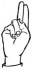На ћирилици написано ВЛАДИМИР ЧОБЕЛИЋ састоји се из 15 слова [?]. Исписано ћириличном једноручном азбуком за глувонеме:
